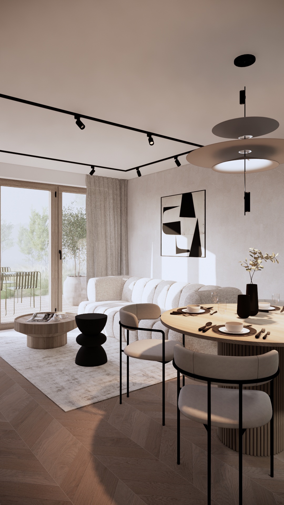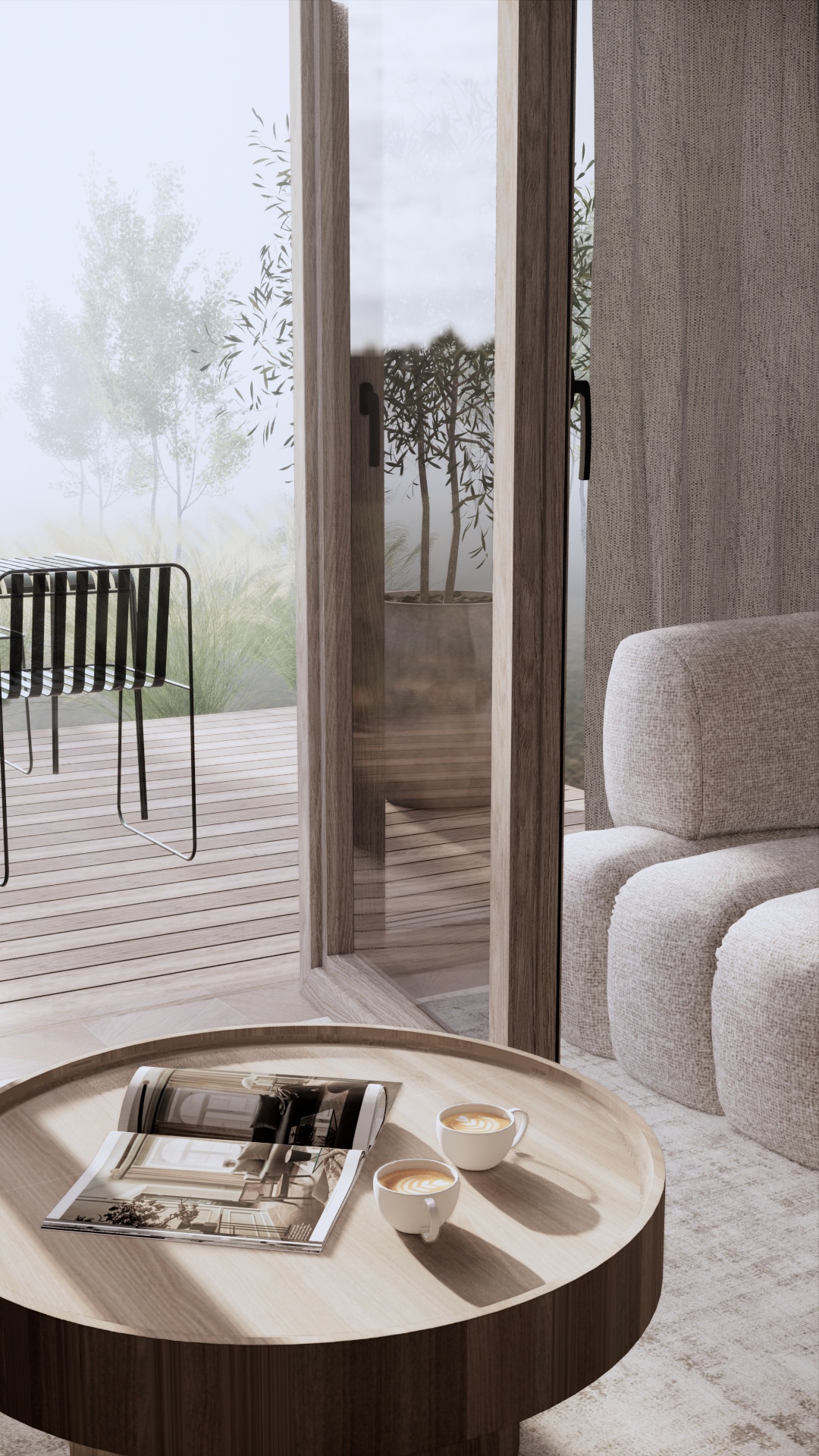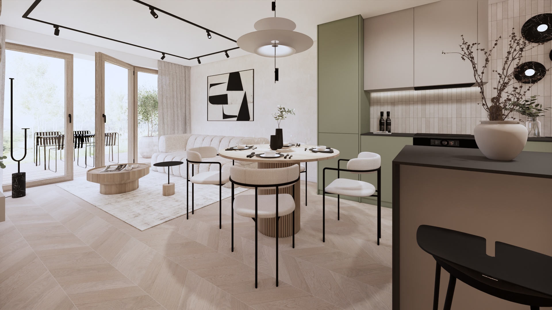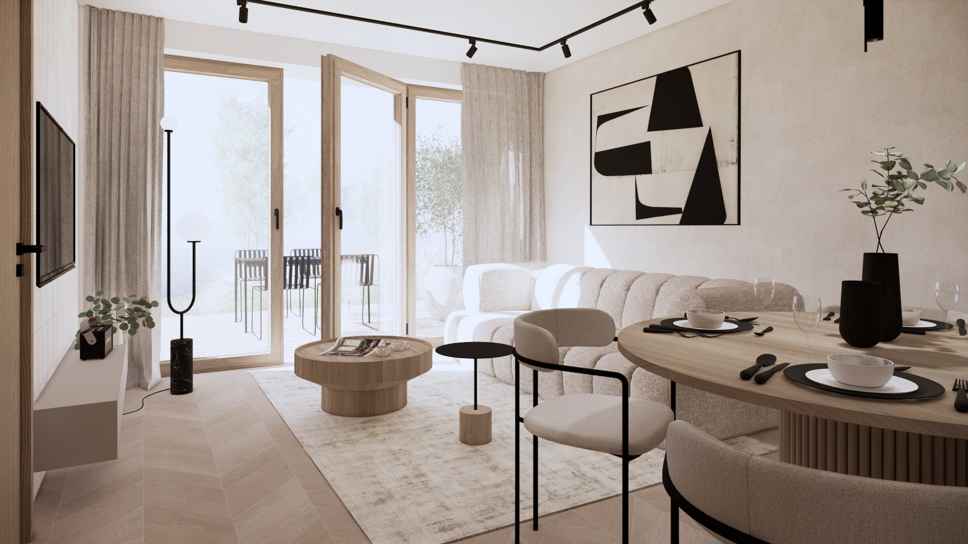 Mieszkania na parterze oferują prywatne ogrody z wyjściem z salonu – idealne miejsce na relaks w ciszy i zieleni. Z kolei lokale na piętrze posiadają balkony od frontu budynku, z których rozpościera się widok na pobliski las.